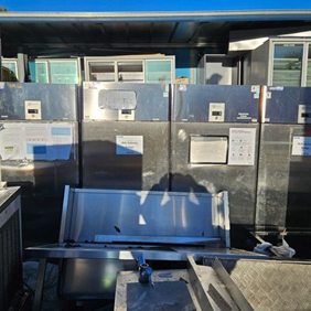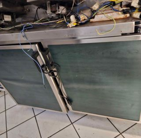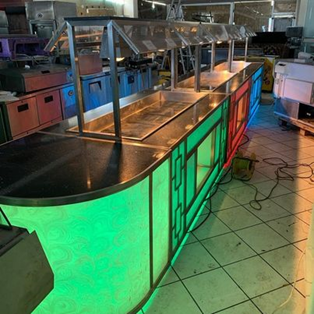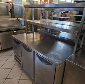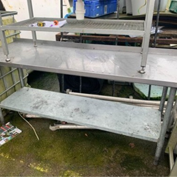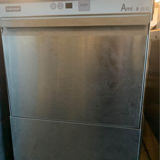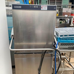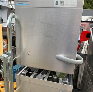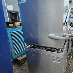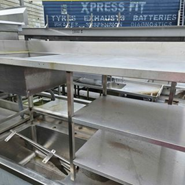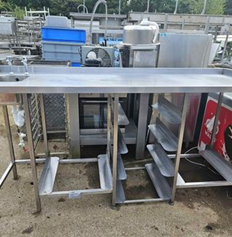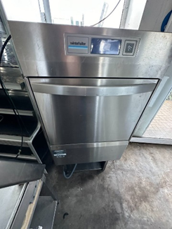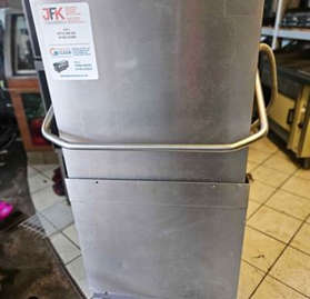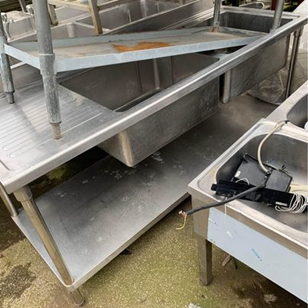 Commercial passthrough dishwasher Comes with tabling and sink.